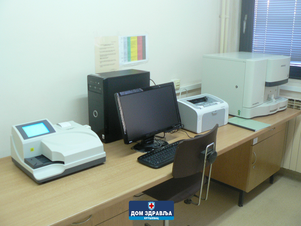 Служба лабораторијске дијагностике бави се узимањем и лабораторијским испитивањима узорака крви (хематолошке и биохемијске анализе, параметри хемостазе), прегледом урина и прегледом фецеса. Служба има 8 пунктова за узорковање биолошког материјала.